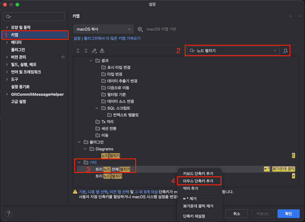 - 편한 단축키 등록 (나는 cmd + 휠클릭으로 했다)