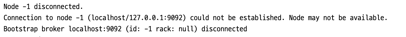 WARN [ntainer#0-0-C-1] org.apache.kafka.clients.NetworkClient : [Consumer clientId=consumer-payment-group-1, groupId=payment-group] Connection to node -1 (localhost/127.0.0.1:9092) could not be established. Node may not be available.
